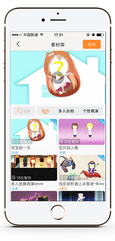用戶可通過將自己的圖片或視頻,配合官方提供的素材進(jìn)行錄制合成,實現(xiàn)人物與動畫合二為一。支持多人物錄制,并配有美顏功能。