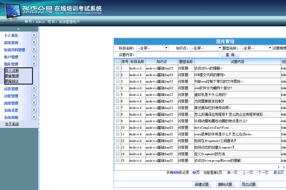 B/S(網(wǎng)站系統(tǒng))方便管理員進(jìn)行考試管理、題庫管理、試卷批改、科目管理、用戶管理、警種管理、單位管理、參數(shù)設(shè)置等。管理員無需安裝任何軟件即可實(shí)現(xiàn)后臺(tái)系統(tǒng)的操作管理。